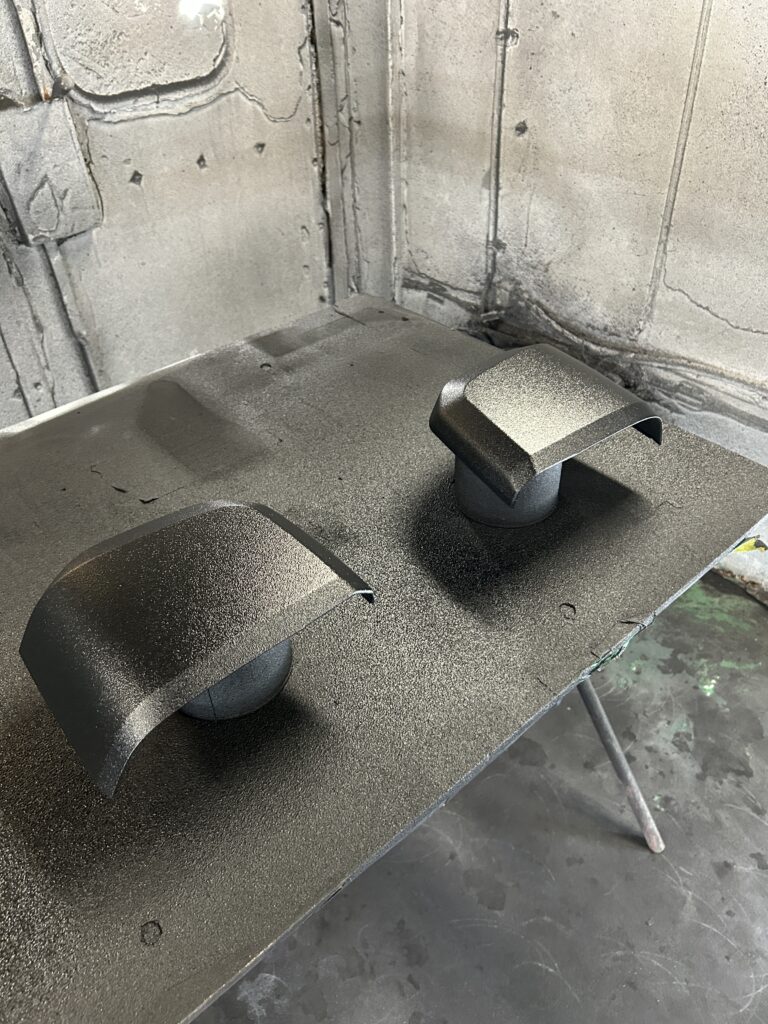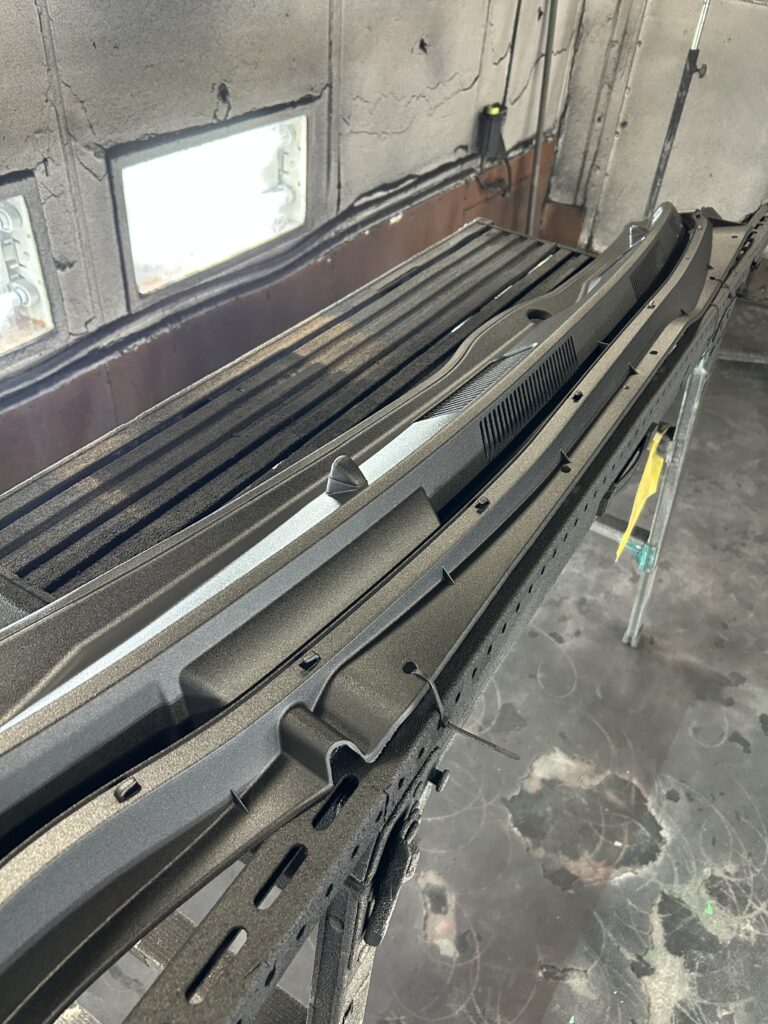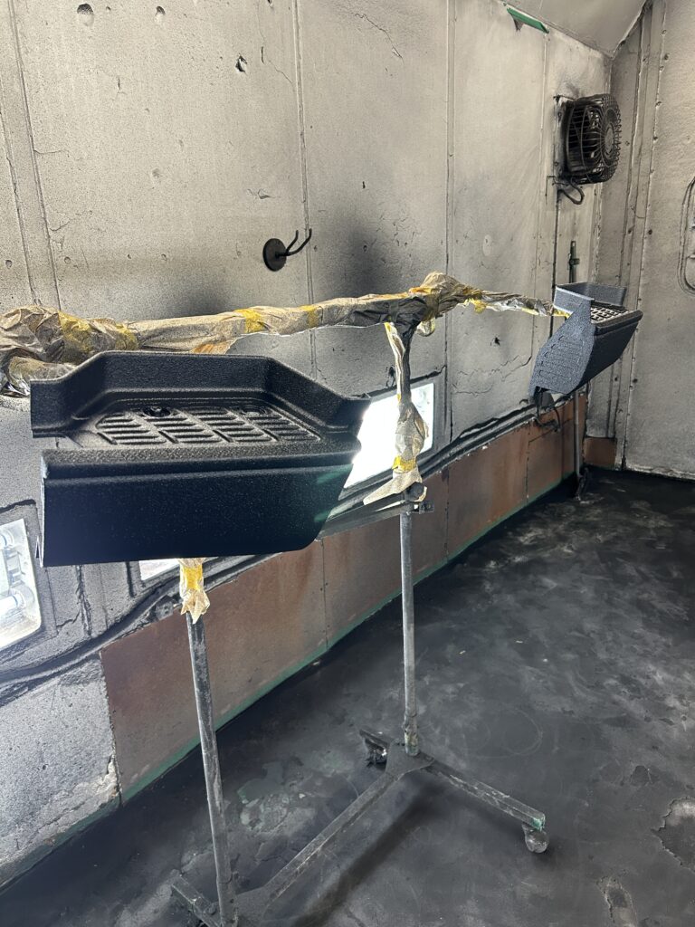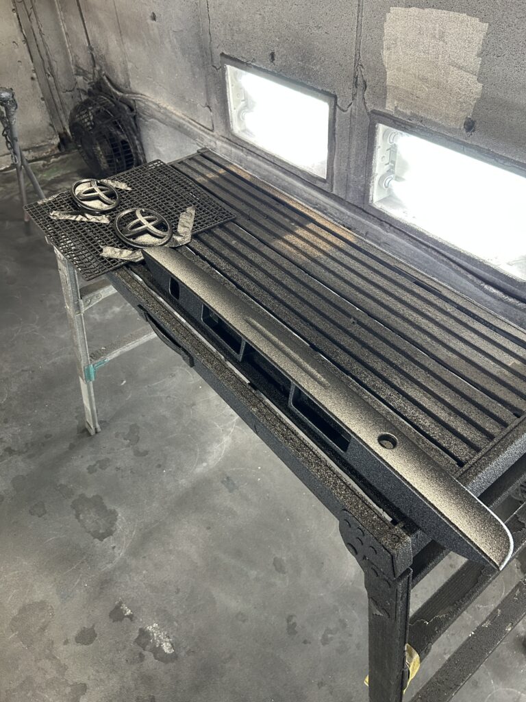 下準備には細部まで下処理を行った後、ラプターライナー塗装を塗布